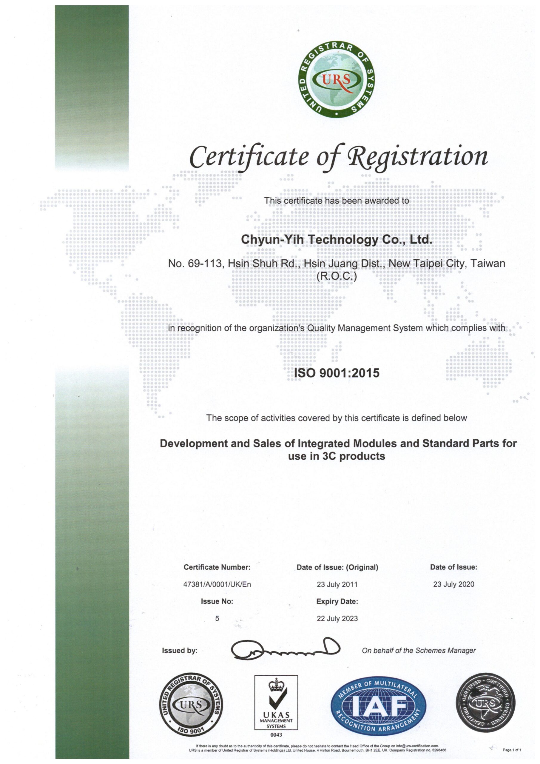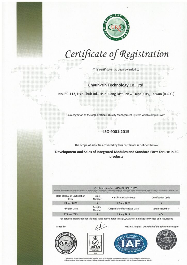 群翊科技嚴格遵循 ISO 9001的品質管理標準,並依據證書效期,每三年重新認證一次,以確保我們持續符合國際要求。透過將 9001 的執行標準作為公司管理的基石,融入日常營運的每個環節;從流程設計到產品交付,再到客戶服務,我們嚴格執行。確保產品與服務的卓越品質。這不僅提升了客戶的信任,也為企業的穩健發展奠定了基礎。